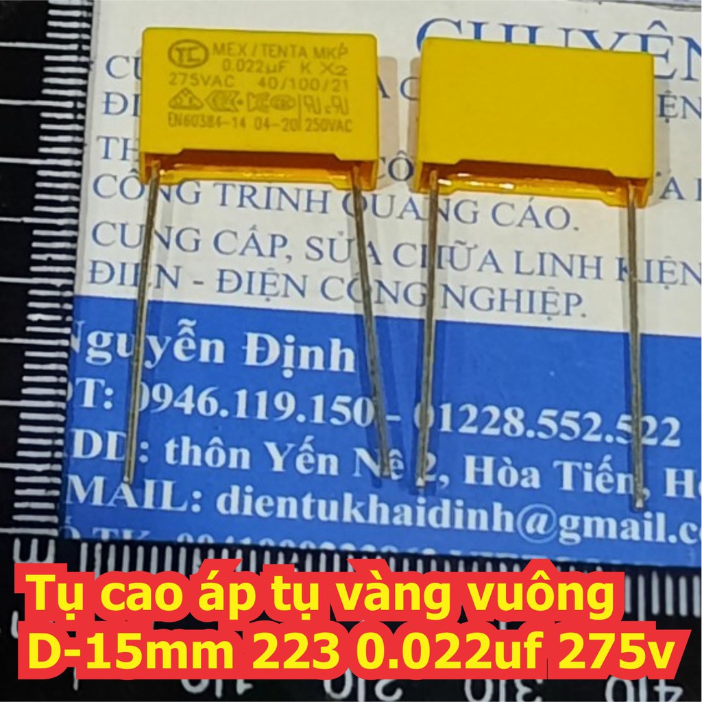 Giới thiệu 20 con Tụ cao áp tụ vàng vuông D-15mm 223 0.022uf 275v kde7308