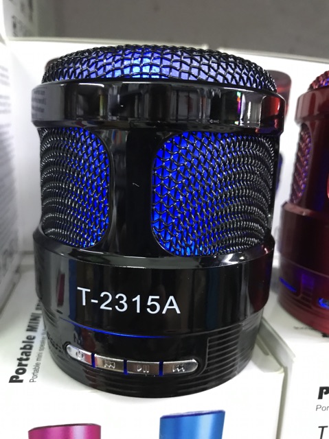 Loa bluetooth mini T-2315A, loa dạng hình trụ nhưng không đơn điệu mà rất bắt mắt, đặc biệt loa có thêm đèn LED đổi màu khi có nhạc, âm thanh nghe khá tốt.