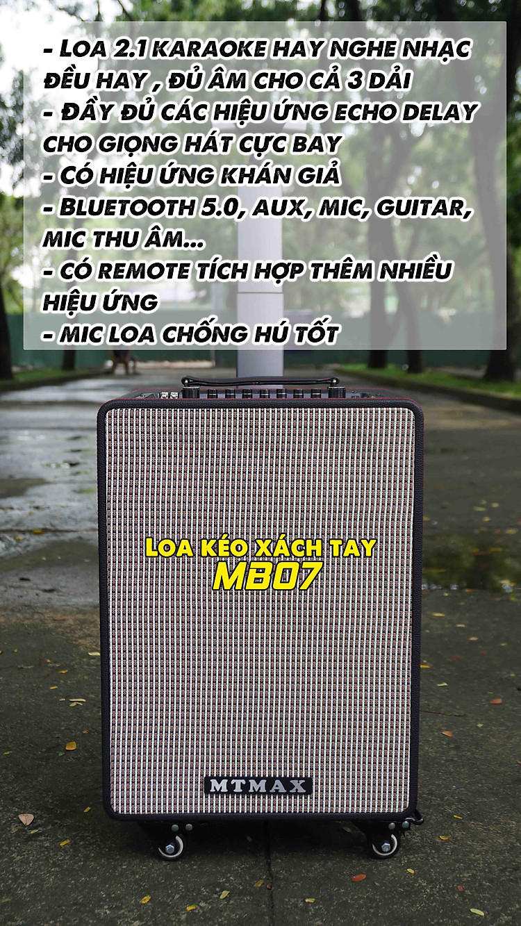 Bạn là người đam mê âm nhạc mọi lúc mọi nơi thì chắc chắn không thể bỏ qua các siêu phẩm loa kéo di động, đặc biệt siêu phẩm Loa kéo xác tay MTMAX MB07 hệ thống loa 2.1 nổi bật với thiết kế nhỏ gọn, thời trang, tích hợp nhiều công nghệ hiện đại, tính năng nổi bật, đáp ứng mọi nhu cầu sử dụng.
