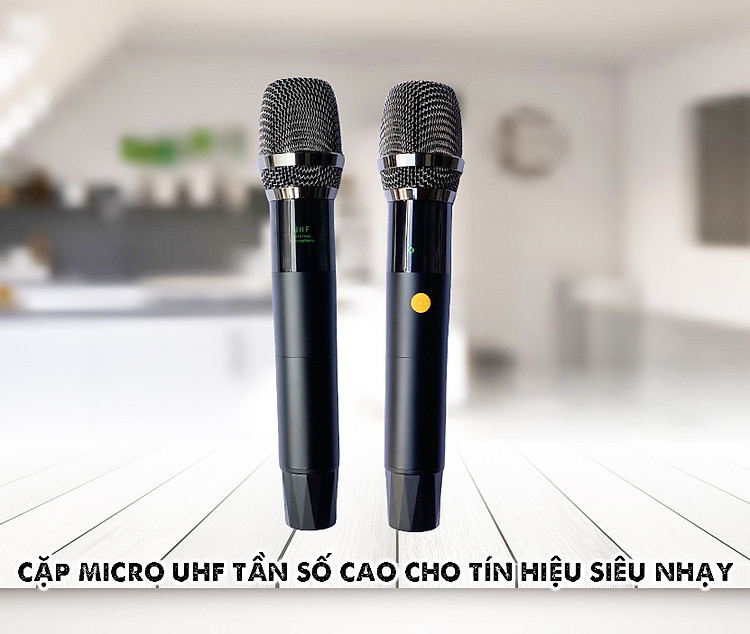 Loa kéo xác tay MTMAX Mb07 đi kèm là 2 micro không dây có kiểu dáng nhỏ gọn, màu sắc vàng đồng cuốn hút. Được trang bị tần số UHF siêu cao cho khả năng bắt tín hiệu nhanh nhạy, cũng như có thể thay đổi tần số khi cần, khả năng chống hú cao hỗ trợ tối đa giọng hát cho người dùng.
