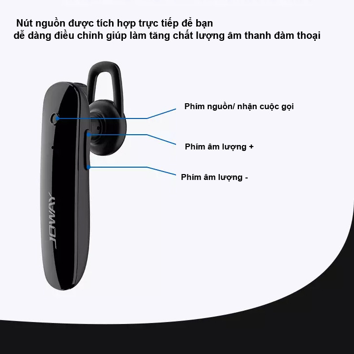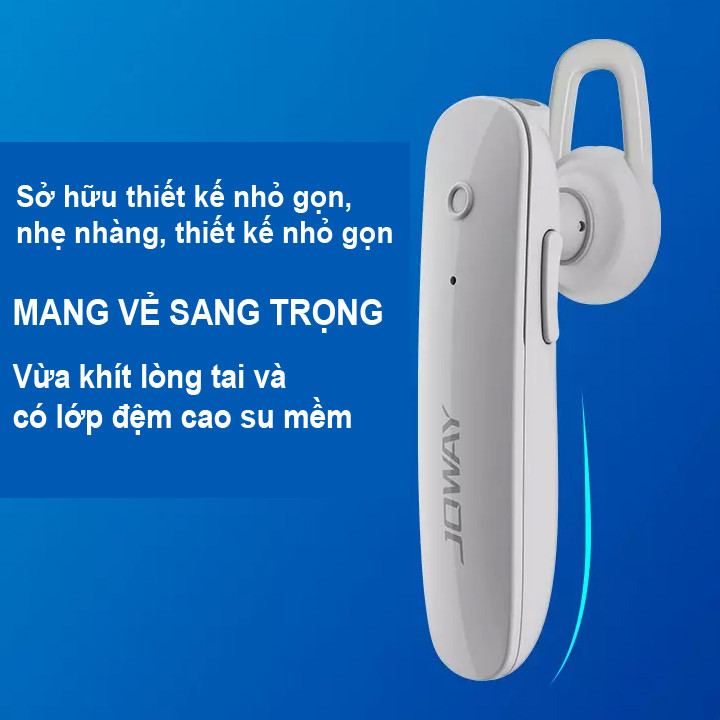 Tai nghe Bluetooth JOWAY H58 sở hữu thiết kế nhỏ gọn, nhẹ nhàng, thiết kế nhỏ gọn, vừa khít lòng tai và có lớp đệm cao su mềm cho bạn lựa chọn, hạn chế tạp âm từ bên ngoài giúp bạn nghe rõ ngay cả trong môi trường khá ồn. Ngoài ra, các nút nguồn được tích hợp trực tiếp để bạn dễ dàng điều chỉnh giúp làm tăng chất lượng âm thanh đàm thoại, rất tiện dụng khi lái xe hay đang di chuyển.