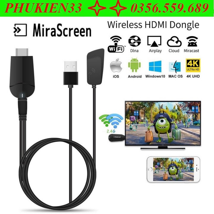 Giới thiệu Thiết Bị HDMI Không Dây MiraScreen K6 4K 2.4 Ghz kết nối điện thợi với tivi 4K