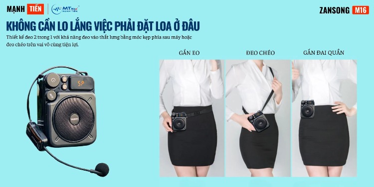 Máy trợ giảngThiết kế đeo 2 trong 1 với khả năng đeo vào thắt lưng bằng móc kẹp phía sau máy hoặc đeo chéo trên vai.