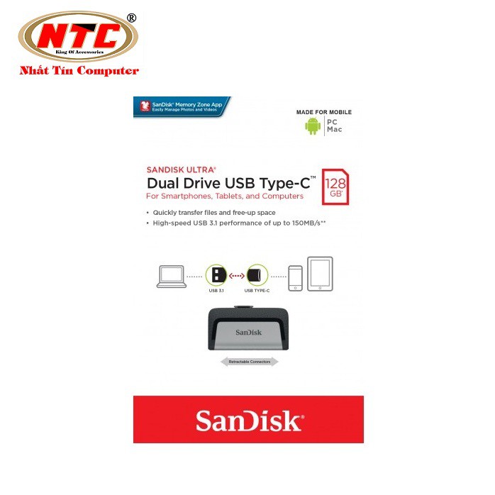 Với kết nối USB kép, USB SanDisk Ultra Dual Type-C USB 3.1 DDC2 tương thích với tất cả các thiết bị dùng cổng USB Type-C mới nhất và cổng USB Type- A truyền thống. Bạn có thể giải phóng không gian trên điện thoại thông minh hoặc máy tính bảng của bạn hoặc chuyển các tập tin giữa nhiều thiết bị.